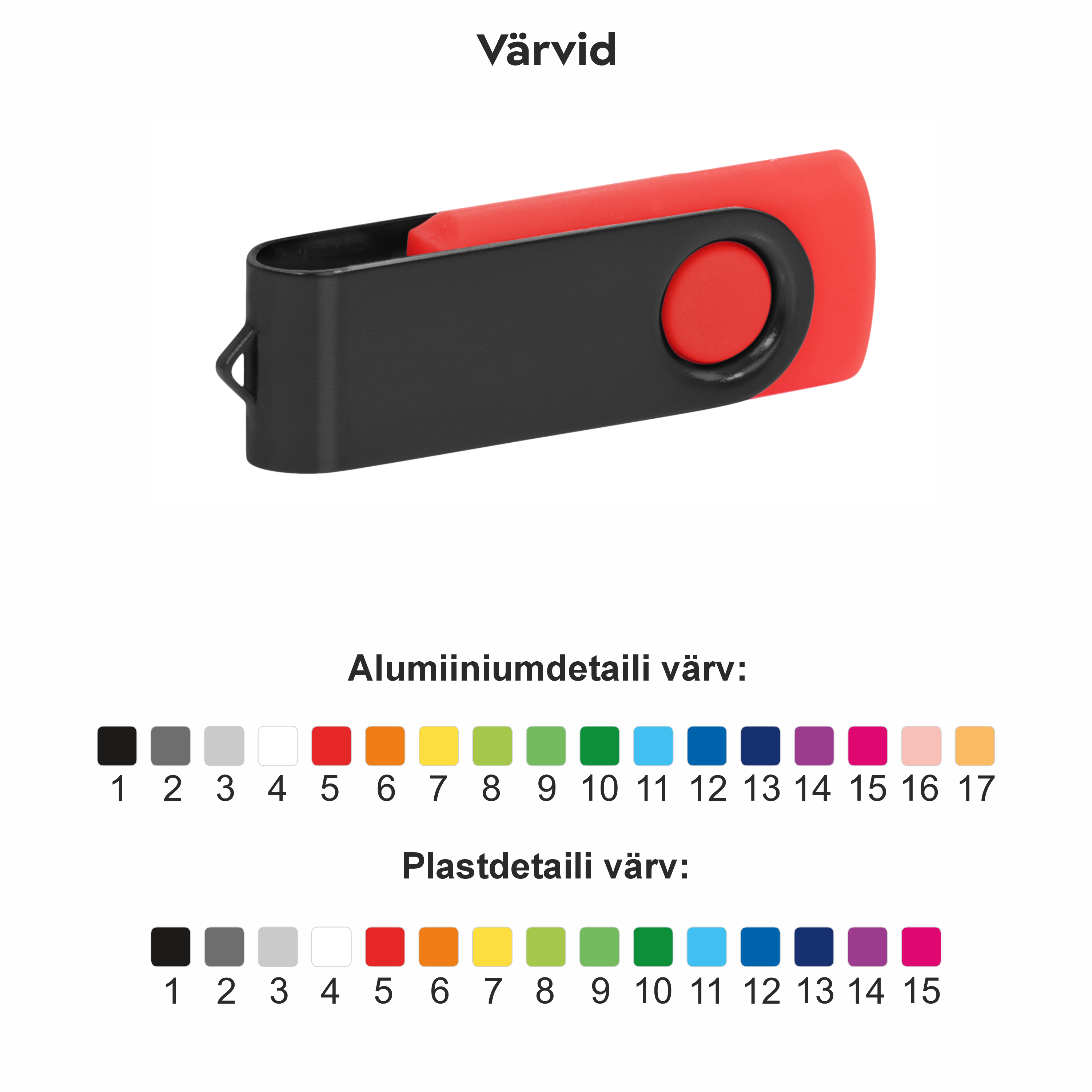 Mälupulk koosneb kahest detailist, mille värvi saab valida paljude erinevate toonide seast. Valikus on üle 300 kombinatsiooni, nii et leiate kindlasti sobiva.