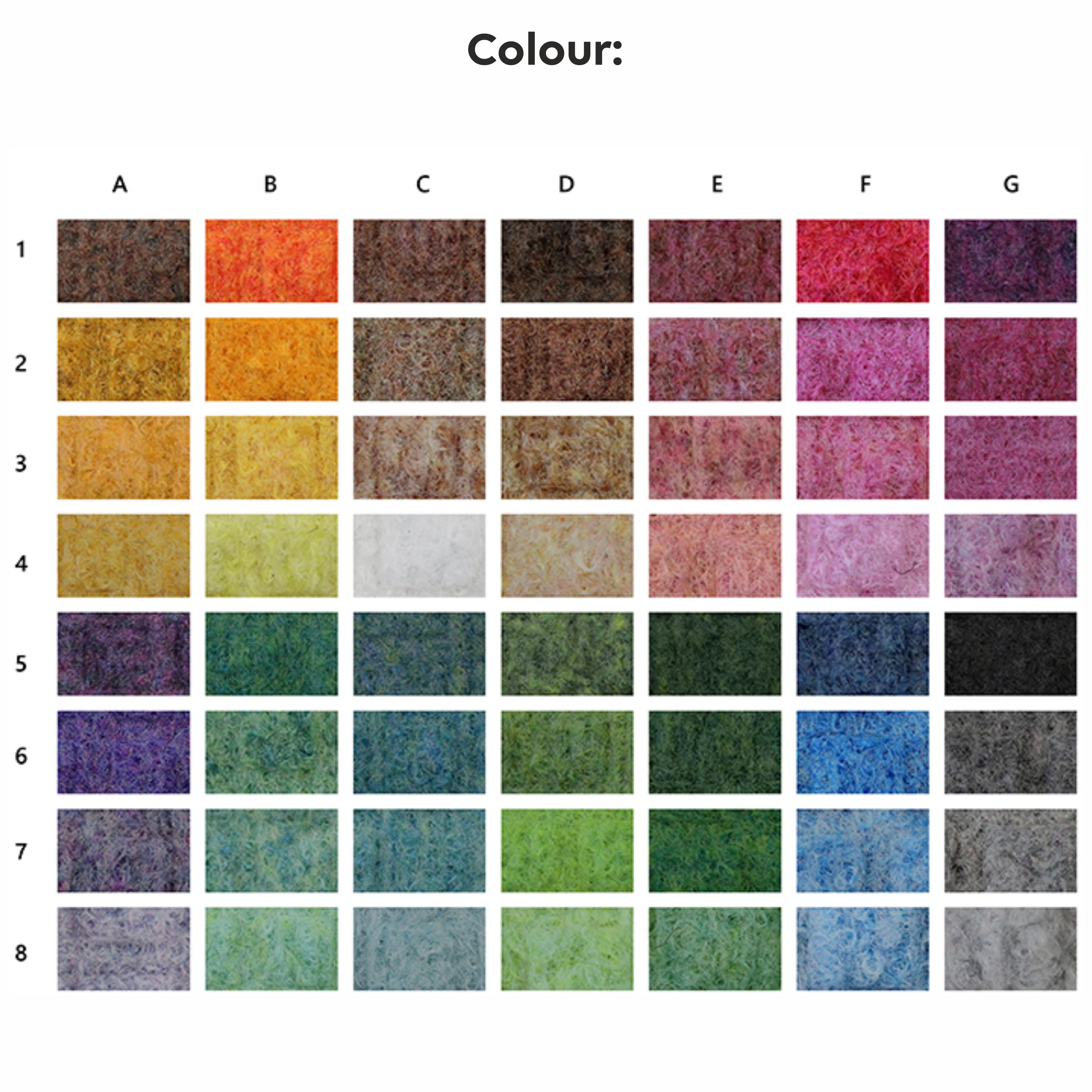 The selection of colours for the material can be found in the images.