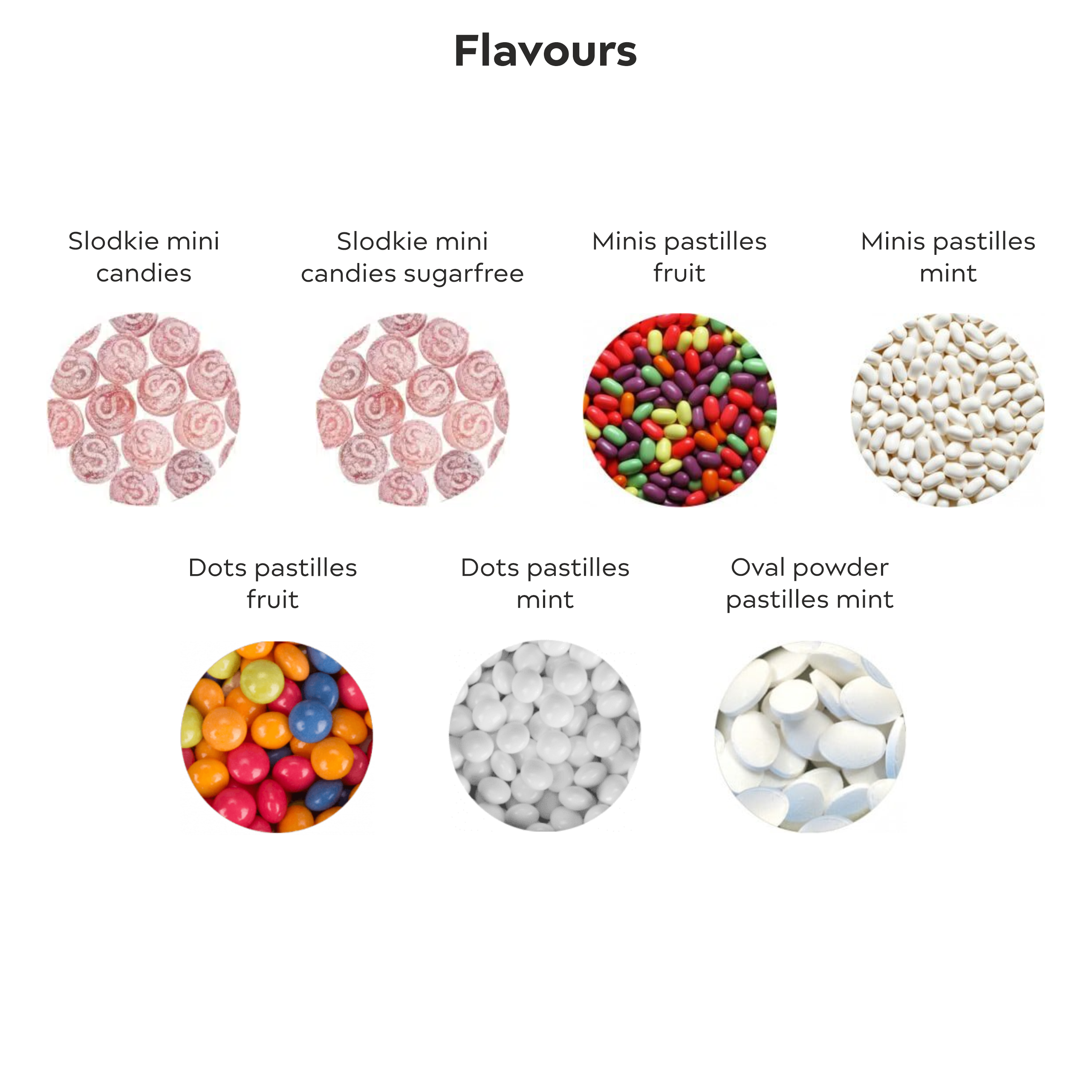 The selection of flavors can be found in the images.