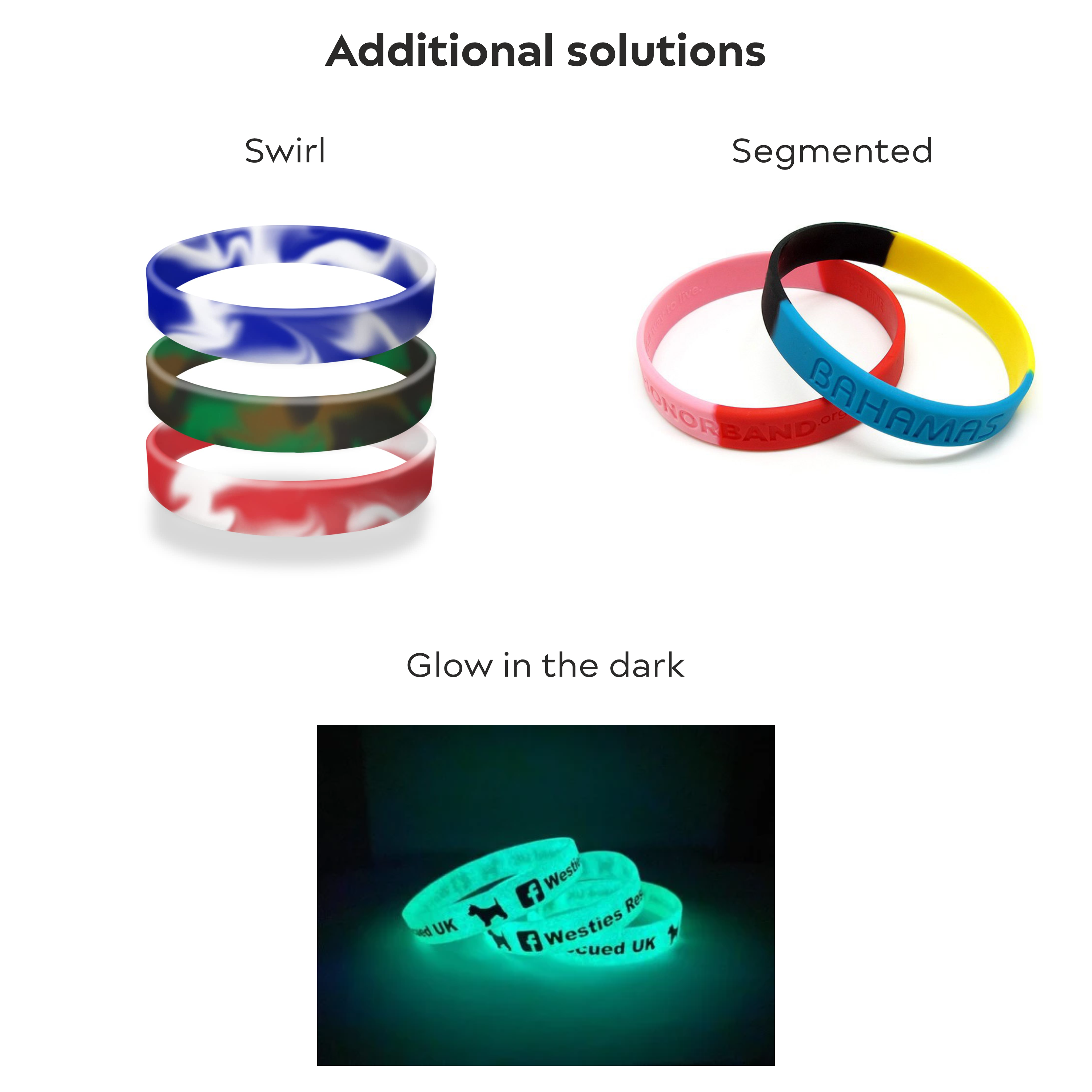 Silicone wristband, which has many different design options. The material of the silicone wristband is allergen-free.