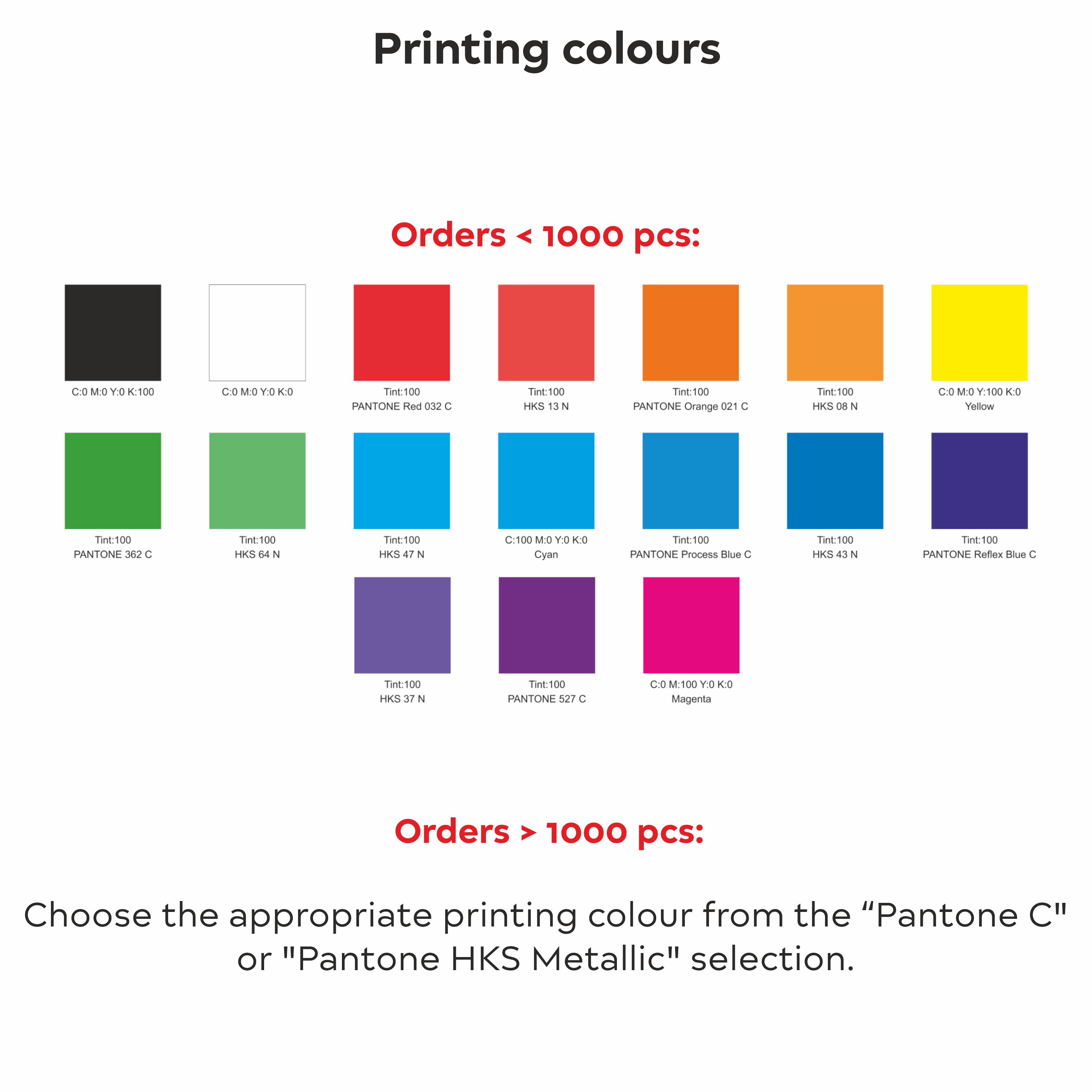 | Värv | aqua green, baby pink, black, blue, bright blue, bright green, bright orange, bright pink, bright yellow, burgundy, dark blue, dark green, green, grey, mint, orange, pink, red, turquoise, vanilla, violet, white, yellow |
