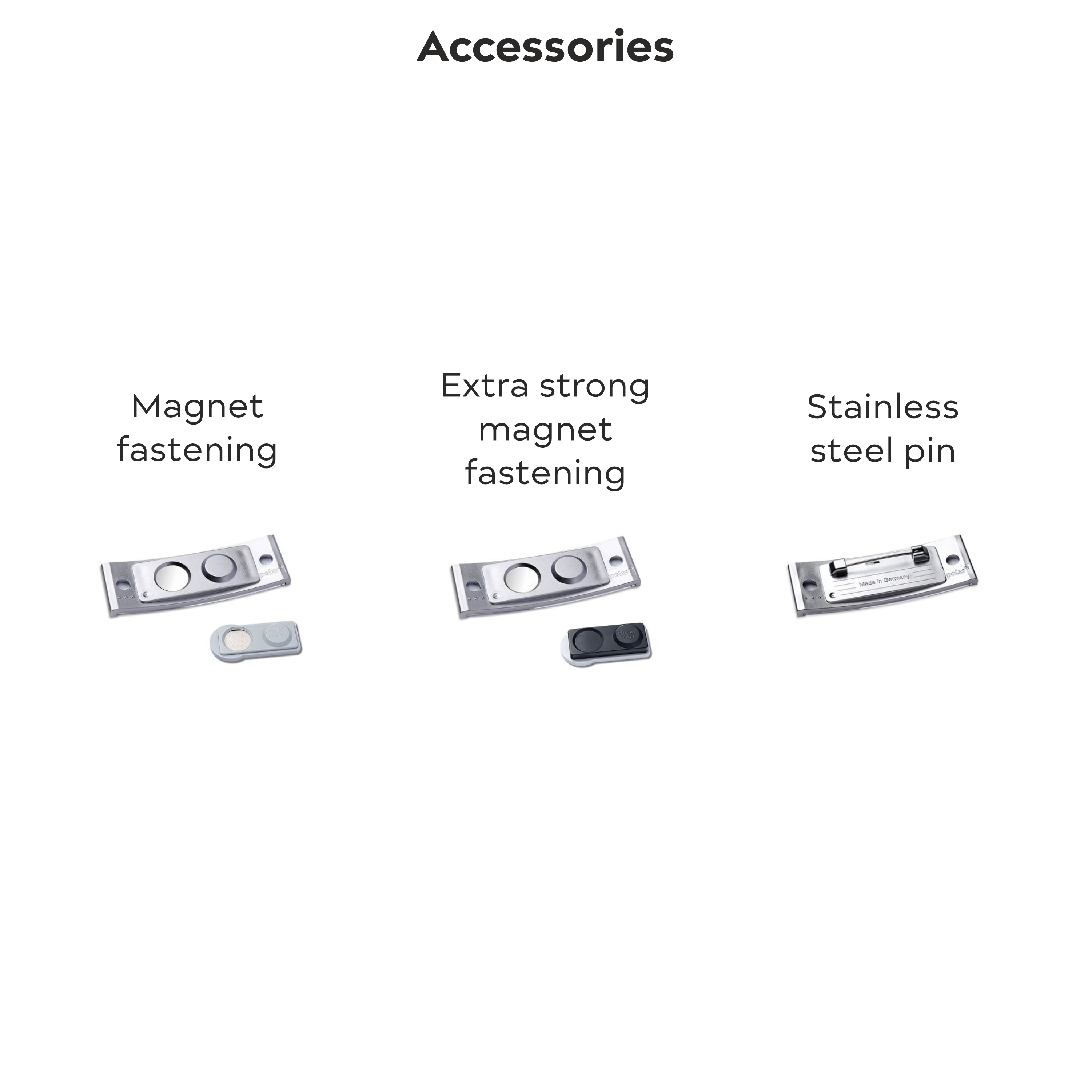 The selection of accessories can be found in the images – default is ‘magnetic fastening’.