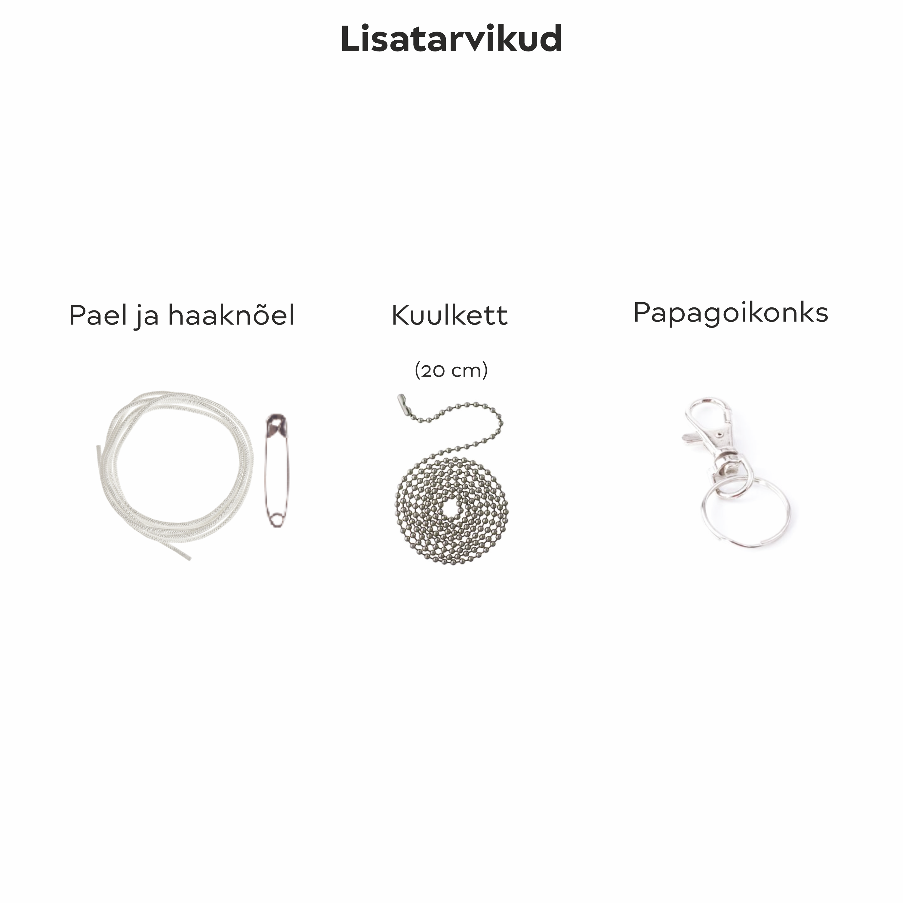 Lisatarvikute valik on leitav piltidel – vaikimisi ‘pael ja haaknõel’.