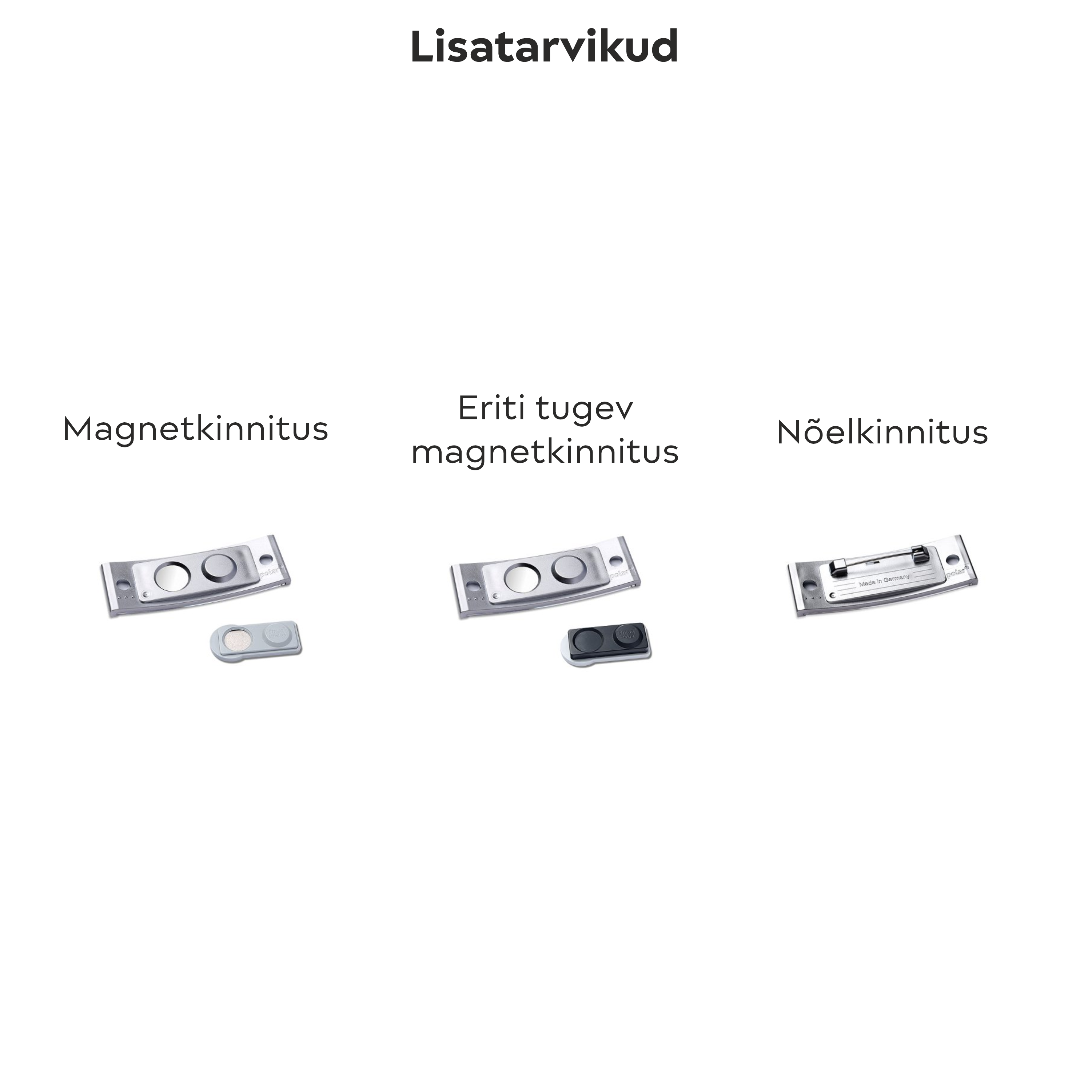 The selection of accessories can be found in the images – default is ‘magnetic fastening’.