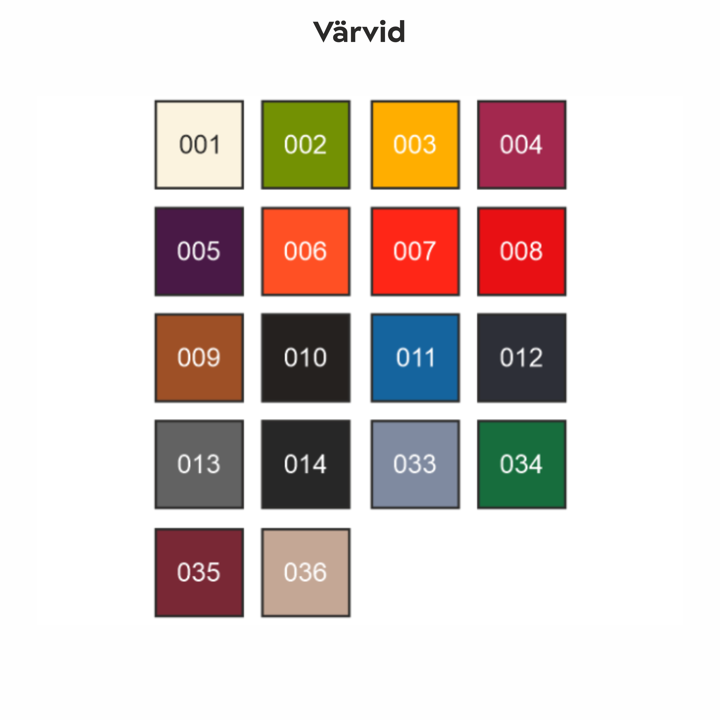 The selection of colours for the material can be found in the images.